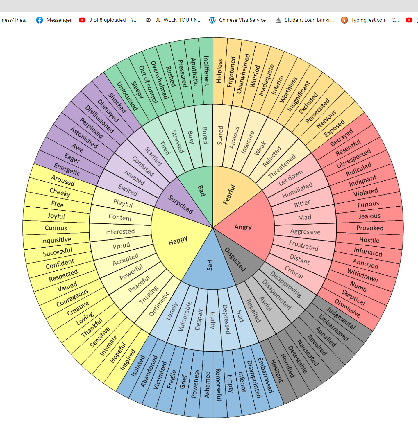 What I'd like you to do this week is work with the emotions wheel. I've attached 2 that are very different. You can do google searches to find many new and innovative approaches toward the wheel. Some may resonate better with you than others.